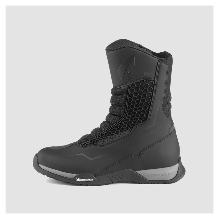 Forma Glider Dry Boots kombinerer vandtæt beskyttelse, ergonomisk komfort og avanceret sikkerhedsteknologi i et par touring-orienterede MC-støvler – et fremragende valg for ryttere der prioriterer både komfort og funktion på lange tur
