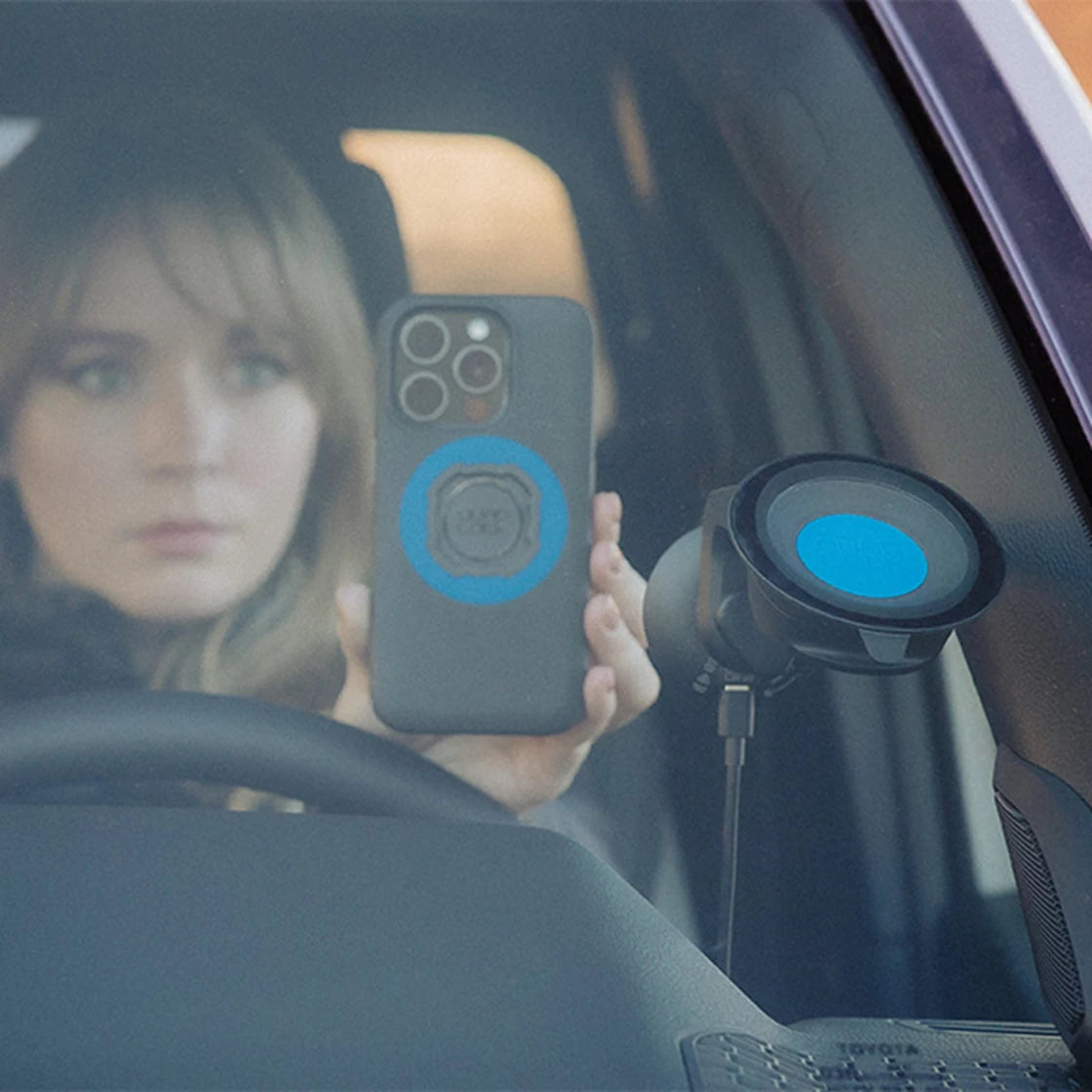 Denne bilholder er kompatibel med alle Quad Lock® etuier og adaptere, så den kan bruges med både iPhone, Samsung, Pixel og andre telefoner, når de er monteret med Quad Lock system. Du kan desuden opgradere holderen med trådløs opladning eller magnetiske Quad Lock MAG-hoveder (sælges separat) for endnu mere funktionalitet.
